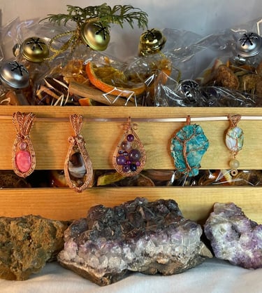 Each of her beautiful handmade pieces would pair wonderfully with any of our Services, or spell kits, adding that extra layer of beauty and energetic support to your practice.